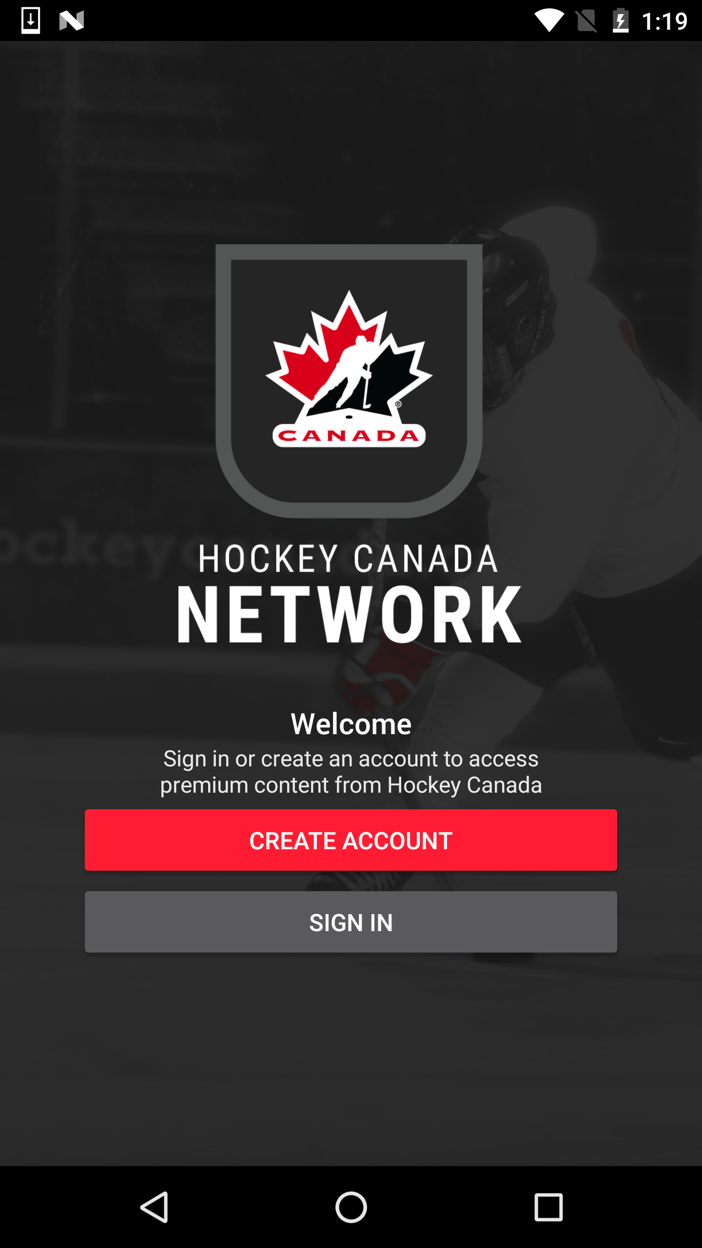 Open the Hockey Canada Network app on your device. If you need help downloading the app, please see our article on How to Download the App.