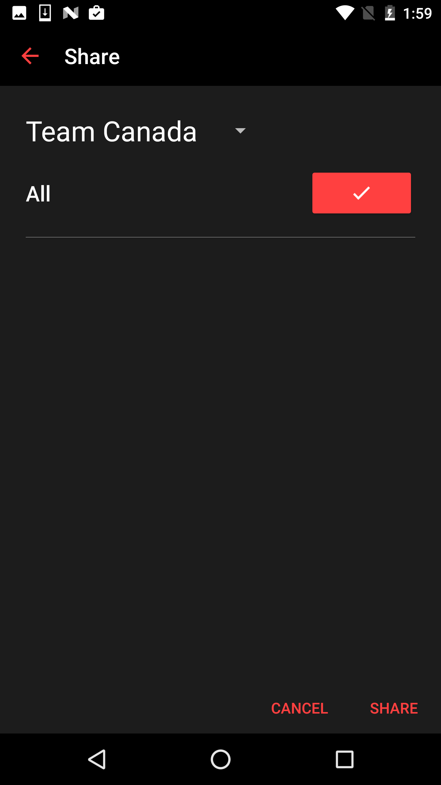 Choisissez l'équipe avec laquelle vous souhaitez partager un article ou une vidéo. Cliquez sur "Partager" lorsque vous avez terminé.