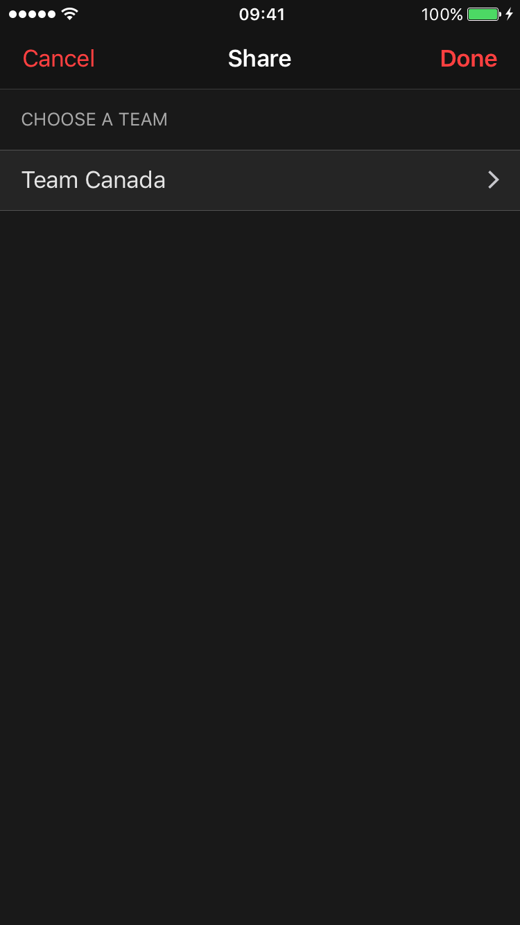 Choisissez avec quelle équipe vous souhaitez partager un article ou une vidéo. Cliquez sur "Terminé" lorsque vous avez terminé.